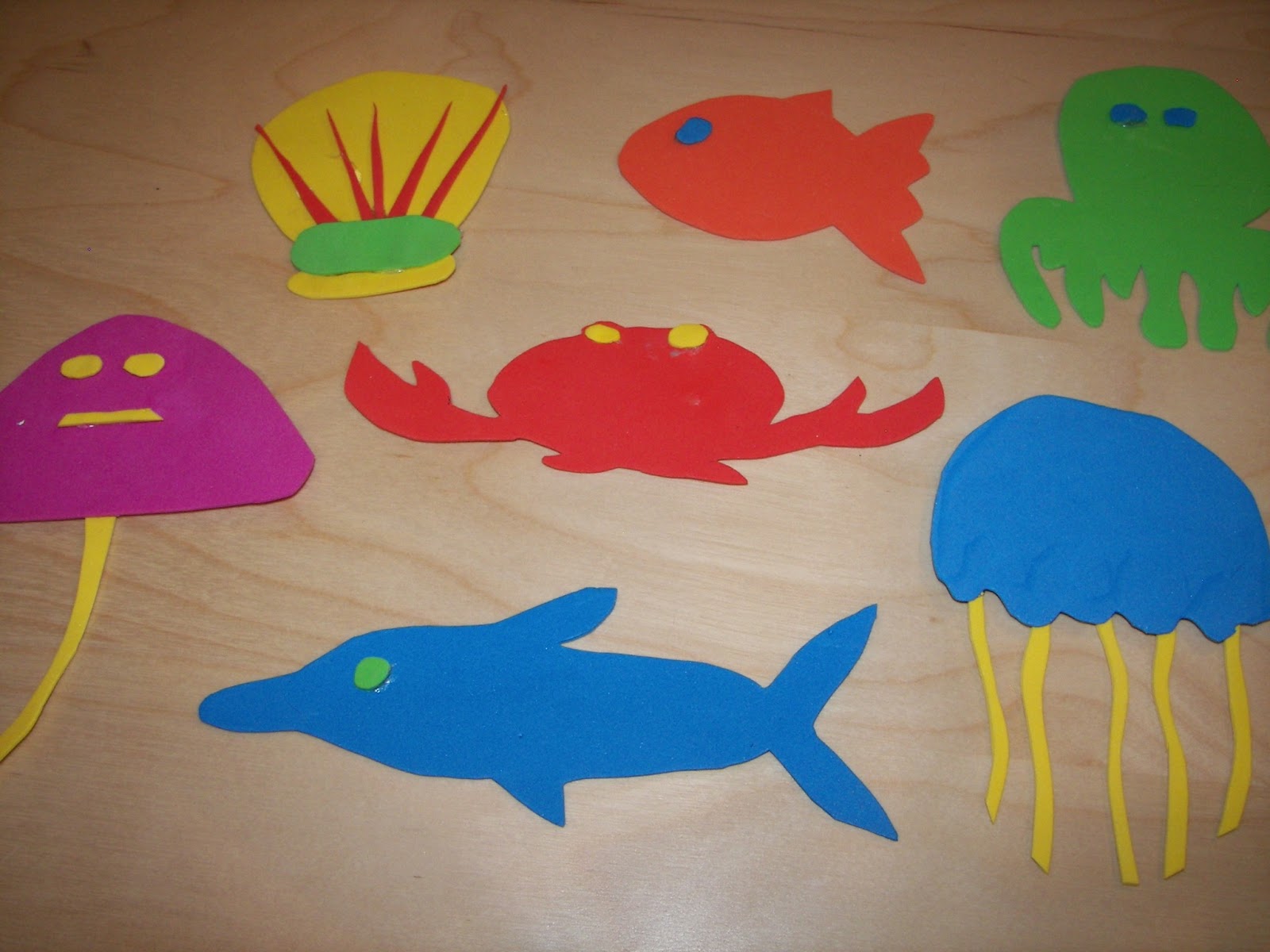 Bath toys you say, why yes they are sea creatures after all but why do they have to be bath toys. They don't. BUT when the foam pieces get wet they STICK TO THE WALLS!!! Awesome!